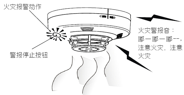 備注:停止火災警報音的過程中(約70秒內),即使監(jiān)測到熱量也不會發(fā)生火災警報。