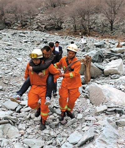 由于山路陡峭,全是碎石,無法使用擔(dān)架等救援設(shè)備,消防官兵只能將受傷游客背著,一步步緩慢下行。經(jīng)過兩個(gè)多小時(shí)艱難前行,消防官兵將被困游客背下山,并隨即送往醫(yī)院救治。