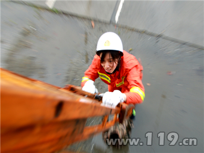 外表柔弱的她,讓人很難和剛毅危險的消防救援聯(lián)系在一起。在這次實戰(zhàn)化的集訓中,作為唯一女學員的羅敏捷拒絕照顧,堅持和其他男隊員完成一樣科目的訓練。在--次摸底考核中,100米跑成績15秒66,讓很多男學員都自愧不如。有一次煙熱訓練,隊長要求她不用操作此科目,羅敏捷堅持要上,并穿戴好個人防護裝具做好安全防護后進入伸手不見五指充滿濃煙的房間內(nèi),-終憑借著自己的努力和堅強的意志完成了訓練科目,在水帶鋪設、救人結(jié)繩法、攀爬6米拉梯、坐膝懸垂等訓練科目上,她甚至還比好多男學員操作的好,讓整個集訓隊都對她刮目相看。