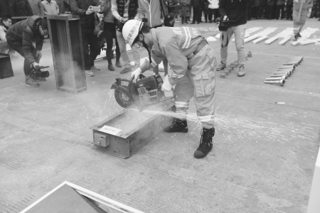 消防官兵用切割機(jī)現(xiàn)場(chǎng)銷毀不合格產(chǎn)品。